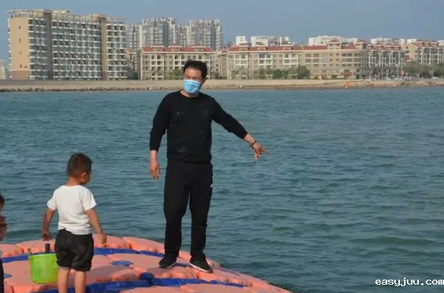 大约12:45,王汉力站在海中的一座浮桥上往海里看,当他的目光移到近处时突然发现,就在北侧离他10多米远的海中,有一个小男孩正在水里扑腾。
